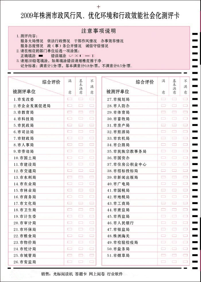政風行風、優(yōu)化環(huán)境和行政效能社會化測評卡
